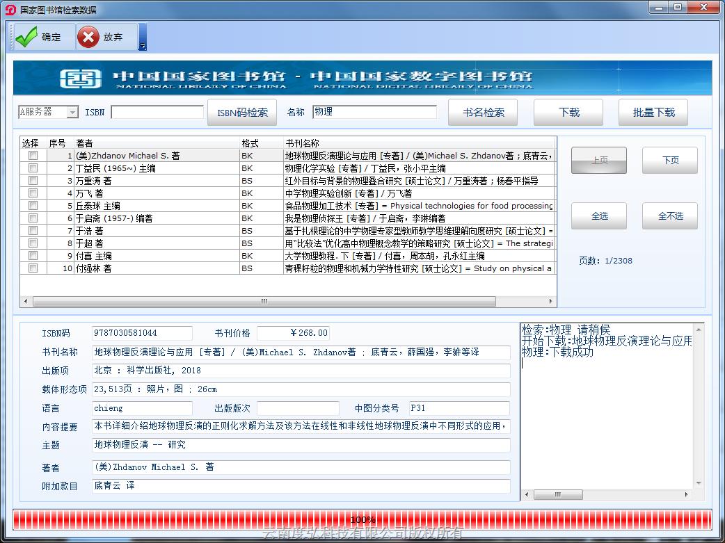若您的系统能够连接外网,支持互联网检索,录入书籍时扫描条形码,软件自动通过互联网检索书籍名称、出版社名、中图分类、内容简介等相关信息,避免繁琐的手工录入,大大提高书籍录入效率。能自动生成中图分类名称,中图分类号,索书号。可以批量下载并保存数据。